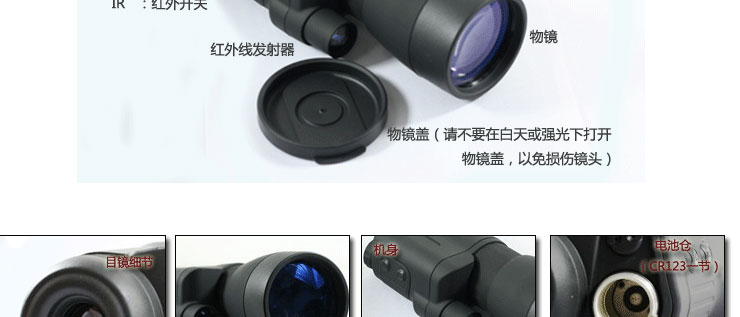2:指示灯超微型设计,减少夜晚暴露目标的可能。超大的视野适合用来作为移动目标的观测。它时常被用于军事的操作和警察搜索。适合用于警察,边界-守卫,关税服务,旅游者,狩猎,渔夫,而且更适合用于在自然界观测和观看鸟。户外探险,天文爱好者观星等理想没备。