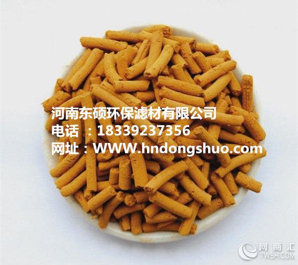 脱硫剂厂家----东硕滤料厂在原有的氧化铁脱硫剂的基础上又研发了新型的HR506型氧化铁脱硫剂,新型的氧化铁脱硫剂在使用上具有设备简单、操作方便、净化度高、床层阻力小、适应性强、脱硫快、硫容高、无二次污染等特点,即使在无氧无氨等苛刻条件下,也能高精度脱除硫化氢。新星滤料厂 主要物理化学性质 新星HR506型氧化铁脱硫剂主要物理性质: 外观:棕褐色条形 外形尺寸:由φ5~6?5~15mm 堆密度:0.65~0.85kg/L 强度:》50.ON/cm(侧压) 孔隙率:50~60% 活性:煤气中含H2S10g/m3时可在数秒钟内脱至1ppm以下 硫容:出口H2S<1ppm时,工作硫容≥30%(重) 出口H2S<20mg/m3时,工作硫容≥40%(重) 出口H2S<50mg/m3时,工作硫容≥50%(重) 如果待脱硫气体中,氧化硫化氢的分子比>2.5时,脱硫和再生同步进行,因此在有氧碱性气氛条件下有利于氧化铁脱硫剂的正常使用。 氧化铁脱硫剂厂家河南东硕环保是从事脱硫剂和活性炭系列多年的厂家,我们拥有先进的科学技术和专业的领导团队,一直在原有的基础上不断创新,引领科学的发展和进步。相信我们与我们合作,你将是大的赢家。 河南东硕环保滤材有限公司 联系人:韩先生 手机 :18339237356 电话:18137139357 传真:0371-64121858 网址:WWW.hndongshuo.com 邮箱:dongshuohb@163.com 地址:河南省巩义市芝田镇蔡庄村