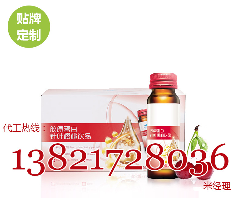 胶原蛋白针叶樱桃饮oem、果味胶原蛋白饮料贴牌加工厂 高新技术企业高标准口服饮品生产 天津中威和治,GMP及SC认证,25年大品牌健康食品加工经验,拥有专业的技术研发团队,提供优势加工产品配方,欢迎来厂实地参观、合作! 丨产品代工明细丨胶原蛋白针叶樱桃饮品、果味胶原蛋白饮料 ? 品级:食品SC ? 含量指标:按需制定 ? 规格(推荐):50ml/100ml玻璃瓶 ? 包装方式(推荐):盒装、礼盒装 ? 起订量/单价:面议、电议 ? 出品商:天津中威和治药业有限公司 ? 联系人:米莱(经理) ? 手机:13821728036(微信同号),商务QQ:2042329220 ? 基本要求:客户必须拥有合法注册商标、营业执照及食品流通许可证,不承接个人业务! 一站式定制合作流程 胶原蛋白针叶樱桃饮品代加工、果味胶原蛋白饮料贴牌OEM天津工厂 中威和治-四大承诺 产品符合国家作业标准,高质量品质保证,超越同业! 生产承诺: 剂型丰富 性价比高 来料、半成品生产过程严格质量管理,保障优质产品 SC产品/口服液 白藜芦醇口服液 果蔬汁饮料 燕窝胶原蛋白饮品 果蔬酵素口服液 抗糖化复合饮品 植物饮料 辣木叶饮品 燕窝玫瑰饮品 壳寡糖饮料 美白口服液 葛根木瓜口服液 包 工 包 料 ---诚信经营,品质保证,价格合理--- 因每位客户需求(市场定位、价位、口味等)不一样,我们提供包工包料代工服务,适合各个消费层。说出您的想法,剩下的全部交由我们为您解决。 将为您提供品牌、原料、工艺配方、包装设计等一条龙服务。免去客户建厂、研发、生产投资的风险,用专业的技术与服务让您全程无忧,中威和治为您量身定做,直到满意为止! 保证能够准确按照贵公司的需求生产出指定品牌的成品。可为客户节省人力物力,缩短上市时间、扩大利润空间、产品品质成熟、市场回报快。中威和治拥有一支由食品行业专家、生物科学博士、资深营养师组成的产品研发团队,致力于将专业营养知识与市场需求相结合,用心研发高品质产品。 各类证件齐全,助力品牌成长 健康食品代工生产的领导厂商-中威和治 品质、安全、功效、服务,是我们的经营理念! 公司介绍 Company Profile ----------------------- ? ------------------------ 天津中威和治药业有限公司注册资本3100万元,固定资产2.6亿元。代加工产品按照严谨的工艺流程和现代化检测方法进行生产和检验,产品质量稳定可靠。 中威和治拥有大规模的自动化生产流水线车间,从加工到包装全程无菌生产,并严选原料,严格把控每道生产环节,让消费者放心。 因为专业 我们保证服务质量 公司现有中药车间、化药车间、保健品车间、医疗器械车间十条生产线,具有中药提取及口服液、片剂、胶囊剂、颗粒剂、茶剂型的生产能力,拥有百余个品种。 生产规模: 胶原蛋白针叶樱桃饮oem、果味胶原蛋白饮料贴牌加工厂,详询:138-2172-8036 专业服务: 协助客户样品的打板、修改以及定板,积极跟进客户的产品销售情况及市场对产品的反应! 品种齐全: TEL:13821728036 胶原蛋白针叶樱桃饮oem、果味胶原蛋白饮料贴牌加工厂