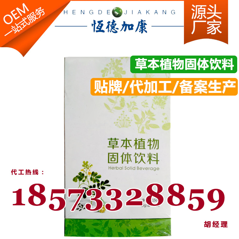 湖南厂家提供瘦身草本植物固体饮料加工贴牌,备案生产 ??草本植物固体饮料代加工 湖南厂家固体饮料贴牌加工提供瘦身草本植物固体饮料加工、纤体固体饮料oem代加工、减肥代餐粉固体饮料贴牌加工、瘦身型固体饮料代加工、养胃型固体饮料代加工、润肠型固体饮料代加工、果香型固体饮料加工、蛋白型固体饮料代加工、粉末状固体饮料代加工、粒状固体饮料代加工?? 草本植物固体饮料OEM加工合作详情: 【品级】食品级(SC认证) 【配方】工厂提供成熟配方或根据客户要求定制 【合作模式】包工包料、来配方加工、来样定制、出口代加工 【注释】客户必须具备合法注册商标、营业执照及食品流通许可证,不承接个人业务 【起订量/单价】面议/电议(可加啾啾:3227725980,手机/V信:18573328859 胡经理) 我们的承诺: 1.足料投产:完全遵照合同规定的标准足量、实料投产,保证产品货真价实。 2.贴心服务:有关客户的批报资料、生产批文、标签、商标、商品名称等严格在客户授权范围内使用。 3.资料保密:产品(含不合格产品)、样品、工艺资料、色版/样、原材料、配方、图纸、交易价格等资料信息保密。 模式介绍丨专注代加工,以制药的标准生产健康食品 ●OEM贴牌代加工方案: 1、用您自己专属的品牌,我们包工包料给您贴牌生产 ●OEM贴牌代加工的特点与实力: 1、产品设备齐全,拥有多家厂房,可以满足客户多种需求 专业品牌,轻松拥有!-恒德加康竭诚为您服务! 公司承接各种固体饮料、压片糖果、凝胶糖果、袋泡茶、等剂型的功能性保健食品,从产品包装、规格、功效、口感、均可自由定制,产品配方可由我方提供成熟配方、也可以自由调配、公司有自己的产品实验室,工程师!请大家务必清楚自己需要什么样的产品及效果,3天快速打样! 「恒德加康」,国内实力工厂,交期快,大厂值得信赖,有配方,有技术,可以满足您的代工需求!全程可追溯质量有保障! 出品方:湖南恒德加康科技有限公司 厂址:湖南省 株洲市 天元区 长江南路 热线:18573328859 胡馨 (同V信) 啾啾:3227725980 V 信:hnhdjk 企业网址】:https://shop1492577140130.1688.com/ 湖南厂家提供瘦身草本植物固体饮料加工贴牌,备案生产