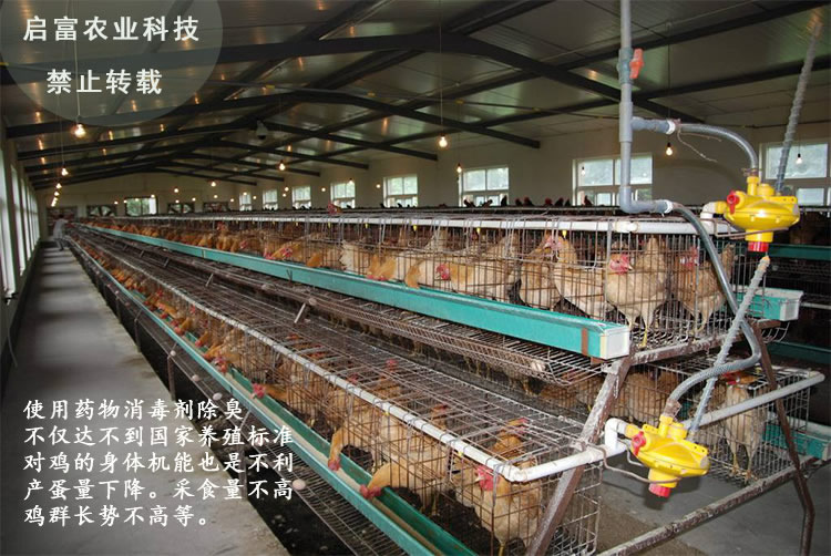 药物消毒剂:有的养殖户不懂产品被人忽悠,购买了含有化学成分的消毒剂,本身化学成分的消毒剂是不允许使用的,化学成分对人身体有害,对鸡也是不利的,并且药物消毒剂不能从根本上降低鸡场臭味,分解氨气,所以鸡场臭味反复发作得不到控制,浪费了成本也延误了时间。