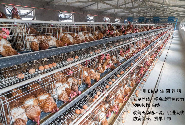 我们都知道,鸡体内有3种细菌,即有益菌、有害菌、无益无害的中性菌。当鸡体内有益菌占优势时,中性菌就向有益菌方向发展,鸡就处于健康生长状态。当有害菌占优势时,中性菌就向有害菌方向发展,鸡就处于生病状态,而em益生菌则是鸡体内需要的有益菌,大大提高了鸡体内的有益菌数量并有效快速的杀死有害菌。通过喷洒消毒除臭,鸡圈生长在一个有益环内,自然生病少长势好。