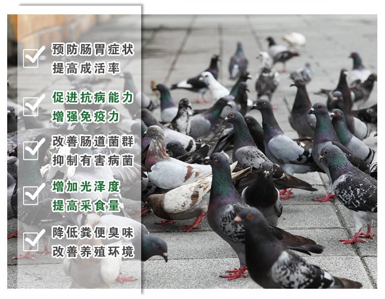 随着肉鸽肠道内有益菌的增多,可以帮助肠胃消化,促进饲料吸收,提高了饲料利用率