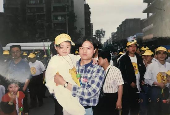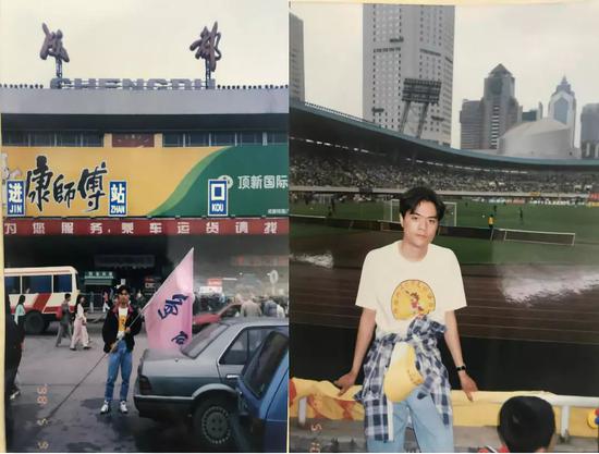 这一年,陕西球迷协会破天荒的包了一列火车组织远征,《华商报》也全程做了跟踪报道,我兴致勃勃的和一位闫姓同事加入远征军,登上了这列绿皮车的硬座奔赴成都。火车上,大家都兴高采烈,几乎彻夜不眠,协会的一个小伙看我敲鼓还比较卖力,给了我一面助威旗,写着两个大字”争雄“,并煞有其事的告诉我,”雄“这个字发音要念”松“,要求我要像保护生命一般保卫这面大旗,我欣然接受回复定不负重托,只是分配给我这面旗是粉红颜色的,感觉怪怪的,赛后协会的人就把旗收走了。现在回忆起来,上世纪90年代人与人之间的情感还是比较淳朴的。火车上结识了一对夫妇,带着自己的小姑娘,当年也就5、6岁吧,我抱着她在进球场前照了一张照片,估计这个小姑娘现在也为人父母了,在这里祝这个再未谋面的小姑娘生活美满幸福吧。下了火车,上百名成都球迷来接站,很是热情,偌大的横幅上面写着“西部球迷是一家”。第二天上午我们和成都五牛俱乐部还进行了简单的联谊,交换了小礼物,我拿到的是成都五牛俱乐部的会员证。