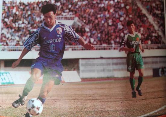 ▲1995年八一队对阵北京国安,左为后来退役后改行当演员的赵家林。| 懂球帝@世界足球博物馆