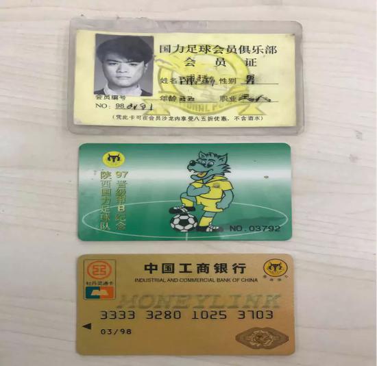 ▲陕西国力足球俱乐部会员证。| 陈澎