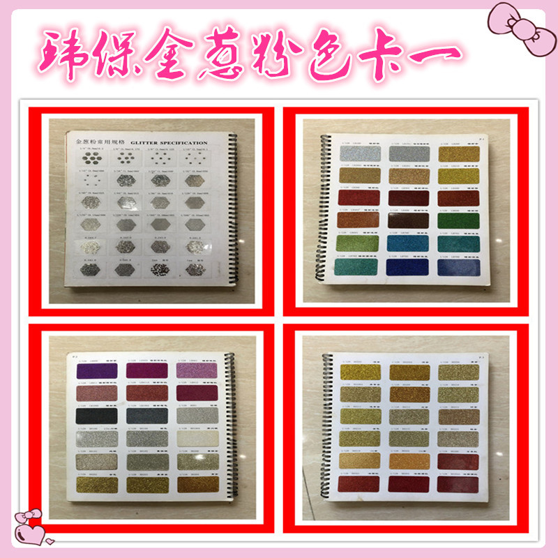 该产品由真空金属质聚酯塑料薄膜组成,其彩色层为热固交叉结合环氧层,可产生的颜色种类广泛,可通过丝印、涂层、喷撒方式用于木、纸、布、金属、皮具、陶瓷等多种材料上。形成装饰或反光等特殊和醒目的效果。pvc材质金葱粉不耐高温(60℃)、不耐酸碱。pet材质金葱粉耐高温(190℃)、耐酸碱。
