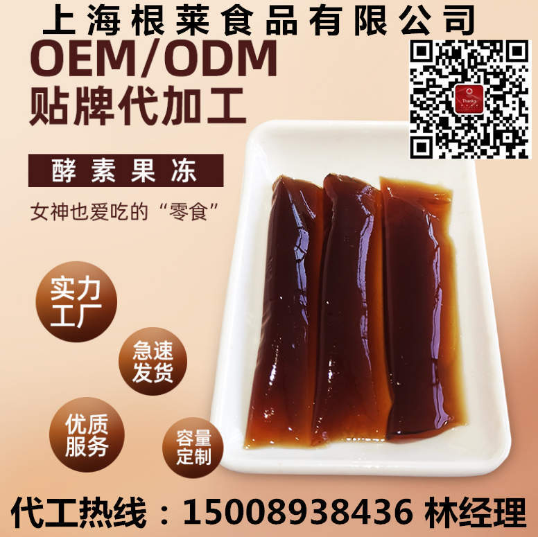 益生菌酵素果冻、火龙果果汁饮料OEM贴牌 上海根莱食品以技术为核心,汇聚众多食品行业专家学者,依托台湾食品研究所,采用专业技术、专注于食品领域产品开发和整体解决方案,与国内外知名流通领域食品企业合作完成多项优质产品。2016年更是着力于机能食品的开发与应用。 四大经营类别,分别为:果汁饮料、固体饮料、粉剂、酵素饮料、胶原蛋白饮料、咖啡茶饮以及机能食品等。 更多产品咨询热线:15008938436 林诗状(项目经理)欢迎咨询! 加工贴牌合作详情: 【品 名】酵素果冻 【品 级】食品级(QS) 【样板】可按客户要求提供样品或试用装打样 【产品配方】工厂提供成熟配方或根据客户要求定制调配 【合作方式】OEM、ODM(包工包料、来料加工、来样加工、出口定制加工等) 【基本要求】品牌商必须有公司、商标及渠道可操作。不承接个人业务 OEM合作方式: 1、贴牌加工,2、来样加工,3、来配方加工,4、来料罐装等合作方式 适合:国际国内有自己品牌的经销商或多年行业经验的投资者。 ODM合作方式: 品牌加工服务,提供产品架构组合,包装设计,辅料选择 适合:公司开发新品牌,代理商或经销商自己生产品牌。 客户服务: 对于客户,我们始终相信彼此是紧密的合作伙伴。对于每项商品开发生产,都当作是自我要求的开始,我们认真看待每个过程,从商品概念、原料、生产制造到质量管理,都贴心的为我们客户着想,以合理的价格生产高质量的商品。因为唯有客户的成功,才是我们的成功。 「专业、迅速、贴心」的客制化服务是我们引以自豪的,相信我们给您,因为我们的自我要求远高于您的需求。 拥有行业标准化检验中心,从研发到生产有数十名专业品控层层把关。 同时与科研检测机构保持深度合作, 原材料和成品检测,人机分离的检测环境,丰富的生产质量管理人员 十万级净化级别,24小时恒温恒湿的生产车间做客户放心的生产加工企业。 选择我们的优势: 1、质量保证--国家认证生产企业 2、高效生产--全套自动化生产设备、研发、生产、采购、物流一条龙服务 3、策划服务--品牌提供包装设计、形象设计、视觉推广、品牌文化、产品策略、价格策略、渠道策略、媒介策略咨询 4、本公司所有产品针对品牌商、电商、电购、微商、商超及美容院、实体店加工OEM/ODM 详情请咨询热线:15008938436 林诗状(项目经理)欢迎咨询!