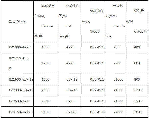 表二 中型板式给料机参数表Table 2:Table of parameters of medium plate feeder